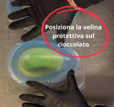 2️⃣ Posiziona la velina protettiva sul cioccolato.